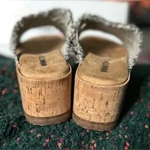 Featuring a comfy, frayed fabric crossband and a trendy wedge bottom, these statement platform slides are the perfect complement to your sunny day ensemble.