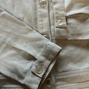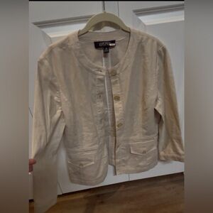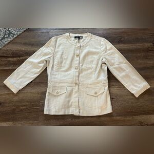 Kasper Linen/Cotton Blend — Tan / cream blazer in a structured yet comfortable material button up. Great for work, school, or casual outings.