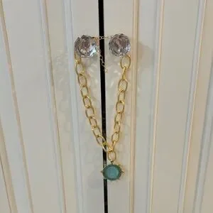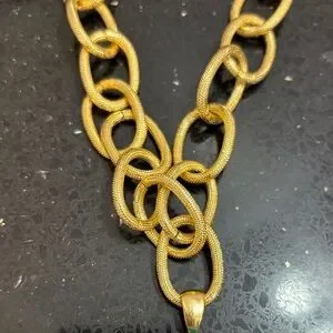 This stunning gold necklace features a captivating blue pendant, perfect for elevating any ensemble with elegance.
