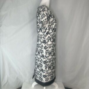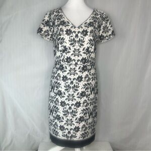 Talbots Dress Black & White Floral V Neck Shirt Sleeves Exposed Back Zipper 4 👍