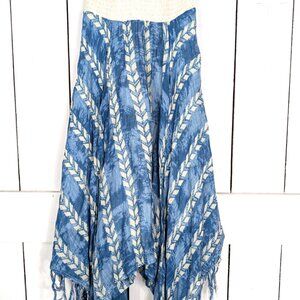 Gauzy cotton shirred strapless handkerchief hem boho dress