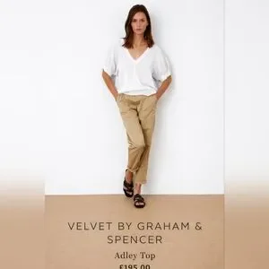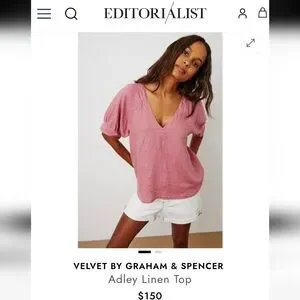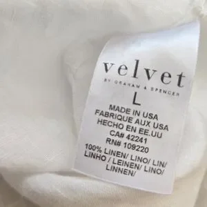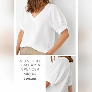100 Linen VELVET White Top Adley Large Puff Sleeves V neck Graham Spencer