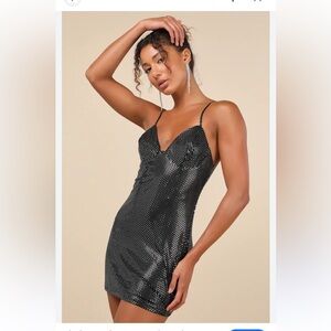 NWT Lulus Immaculate Energy Black Dotted Mesh Bodycon Mini Dress