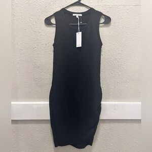 ANTISTAR Black Ribbed Knit Dress with Ruched Side NWT XS