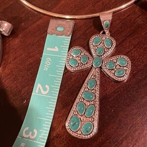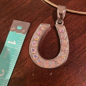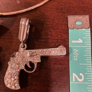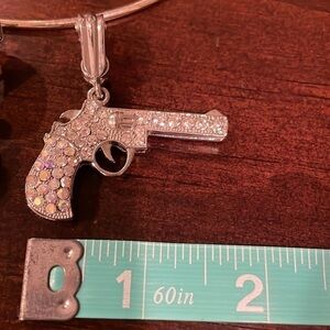 Costume Accessories! 🧲Horseshoe pendant has iridescent stones, ✝️cross has turquoise stones, 🤎brown stones, and the 🔫pistol has both iridescent & clear crystals. All silver! Adjustable necklace! You can switch out the pendant and wear the necklace for any occasion!