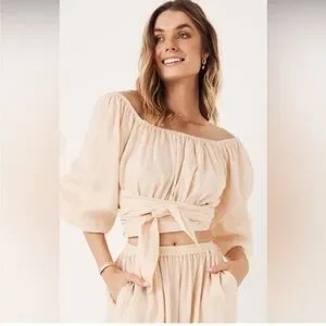 Linen wrap shirt, beach, vacation, pale peach, sailing, vacation, like new.