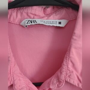 Zara Pink Button-Front Peplum Blouse