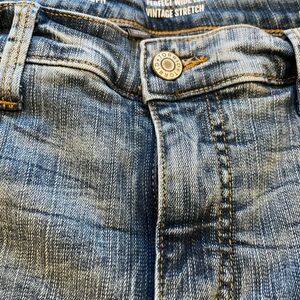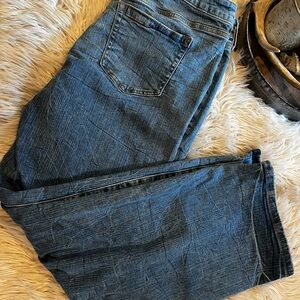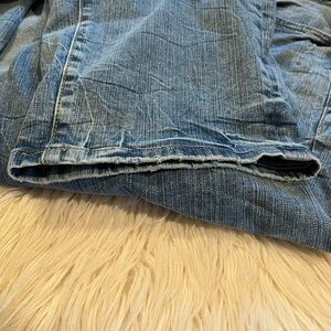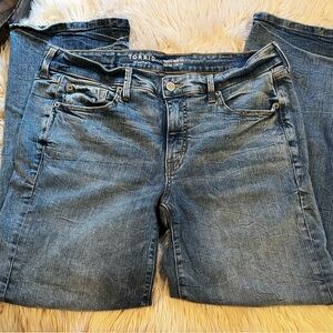Stylish flare jeans with a wide leg. Distressed accents for a modern look. Comfortable and chic.