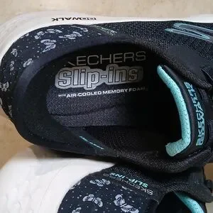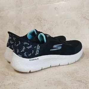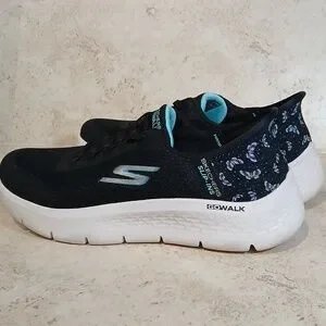 Skechers GOwalk Women's Black & Teal Accent Slip-On Athletic Sneakers Sz 7 EUC