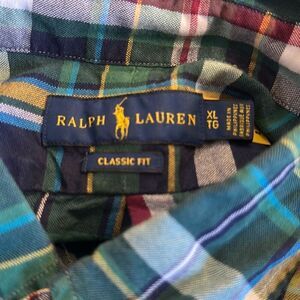 Ralph Lauren Shirt Mens XL Blue Green Plaid Button Up Flesh Color Pony