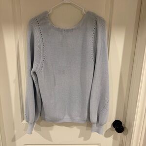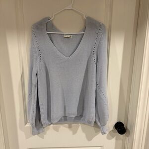 Gentle Fawn Light Blue Knit Sweater XL V Neck Balloon Sleeve Soft Cozy Pullover