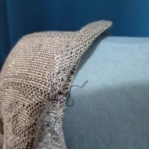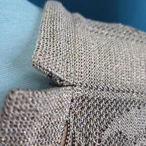 Material: Metallic knit (likely a rayon/metallic blend typical of the brand)