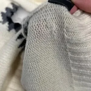Overall condition is excellent. There is a snag (last 2 photos) but it has been pulled through to the inside so it's not visible from the exterior