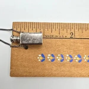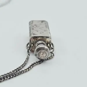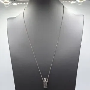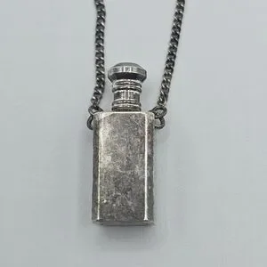 VTG Gothic Silver Tone Mini Perfume Medicine Bottle Pendant Necklace 24"