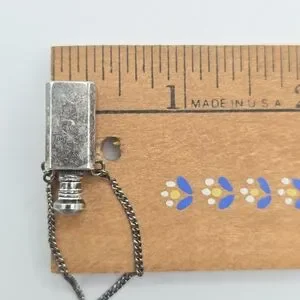 Item is in good, vintage condition. Visible surface wear throughout, including surface scratches, tarnish, and plating wear. Chain and clasp show wear and discoloration. Some of the curb links are slightly twisted in one area closer to the clasp. Top screws on and off as intended. Pendant appears secure. Any condition notes are also pictured. Please review all photos prior to purchase.
