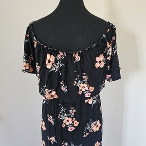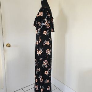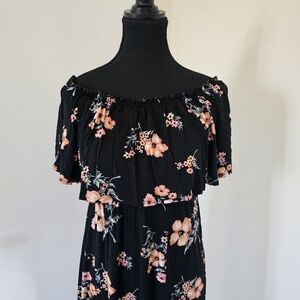 Floral Off the Shoulder Black Maxi Dress