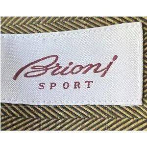 Brioni Sport Italy Olive Herringbone Cotton Shirt Mens M Luxury Classic Fit