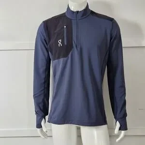 On Running Weather Shirt Mens Large Navy Blue Black 1/4 Zip Long Sleeve