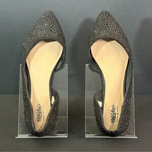 MOSSIMO WOMENS BLACK RHINESTONE STUDDED d'ORSAY SPARKLING BALLET POINTED FLATS