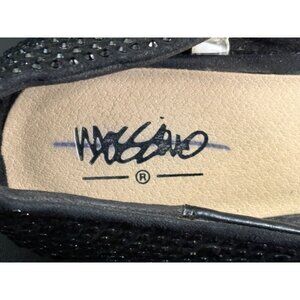 These Mossimo black rhinestone studded sparkling pointed flats are a stylish and versatile option for women. The slip-on closure and pointed toe shape make them easy to wear for casual occasions during any season. The black color with studded accents adds a touch of edginess to the classic flat design, perfect for adding a bit of glam to your wardrobe. With a comfortable flat sole, these shoes are ideal for all-day wear and can be dressed up or down to suit any outfit, open sides to expose the arch of the foot.
