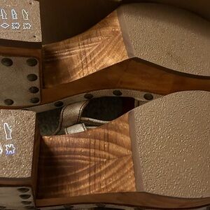 Stylish, gorgeous and comfy strappy platform sandals with a wooden-look block heel. Features stud accents and an adjustable ankle buckle for a secure fit. Comfortable footbed and versatile design for day-to-night wear. Perfect for adding style to any outfit. Size 8, fits true to size