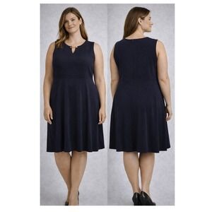 Connected Apparel Fit Flare Dress Womens 20W Navy Gold Bar Professional Classic