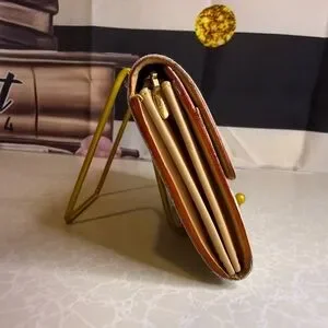 Stylish Louis Vuitton wallet with multicolor monogram design. Features a secure snap closure. Perfect for everyday use.