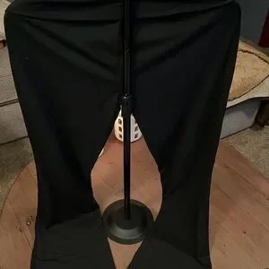 black high-waisted, flare leggings, goth style, trendy, figure-flattering, stretchy, sleek, all-black, modern, versatile