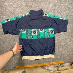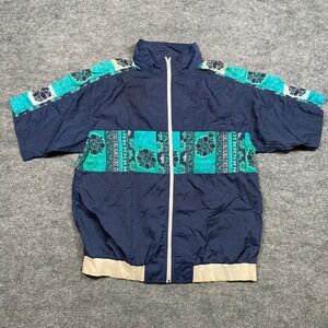 Fresh Peaches Vintage 90s Windbreaker Jacket Navy Teal Paisley Mens Large USA