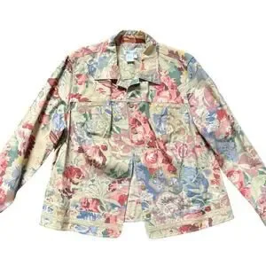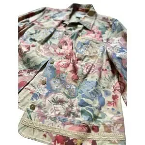 Coldwater Creek Floral Denim Jacket Size 1X Womens
