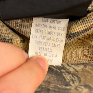 Vintage Sasquatch camo long-sleeve, 100% cotton, Made in USA