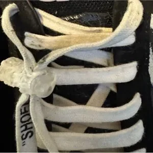Call Out: There is noticeable wear on the red zip tie, and one of the shoelace holders has minor damage from a dog bite. Normal wear and tear is present throughout. Please refer to the last three photos for call out details.