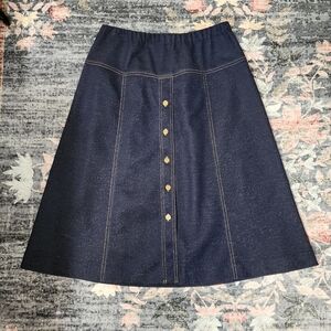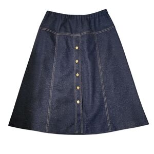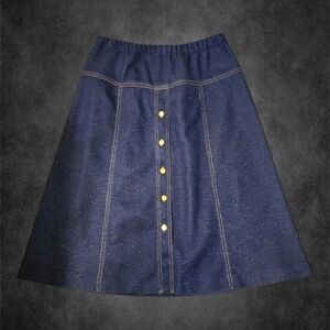 Vintage Graff Californiawear Blue Faux Denim A-Line Midi Skirt – Sz L/XL