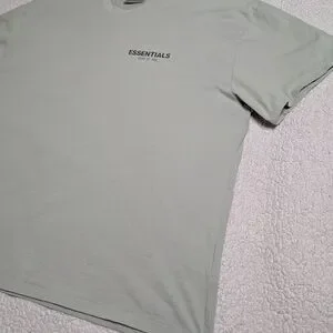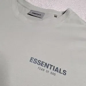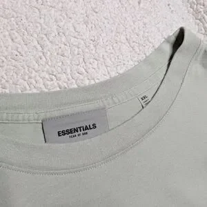 ESSENTIALS FEAR OF GOD DEAL ALERT — refined sage / seafoam tone, minimal but elevated with the iconic rubber logo design.