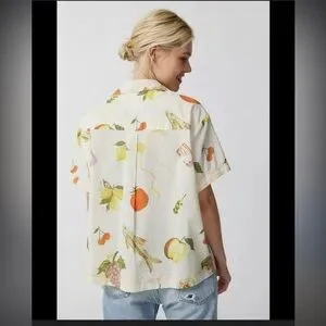 Urban Outfitters Lana Souvenir Fruit Print Short Sleeve Button Down Shirt Resort