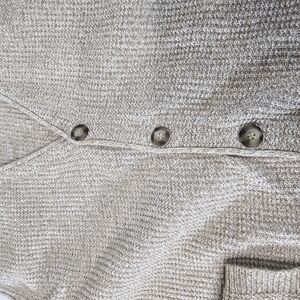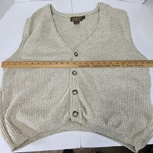 Classic tan cardigan vest. Ideal for layering. Button-up front.