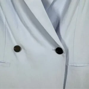 everlane blazer, light blue blazer, women’s size 6 blazer, double breasted jacket, sustainable fashion blazer, modern workwear jacket, minimalist blazer women, office wear blazer, tailored blue jacket, recycled polyester blazer, work wear, career wear, business casual