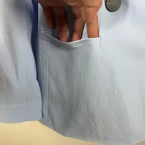Good pre-owned condition. Light natural wrinkling throughout fabric consistent with wear and storage. No holes, stains, or major flaws noted. Buttons intact. Sold as is.