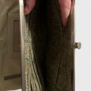 HOBO Leather Frame Clutch Wallet Beige Taupe Kisslock Organizer Vintage Style