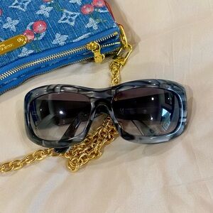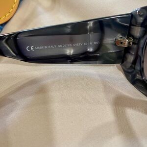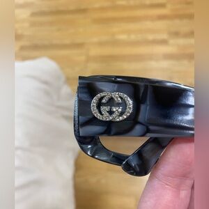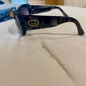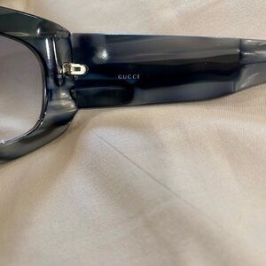 Excellent used condition, Authentic GUCCI “GG” rhinestone sunglasses. They have a grey & black marbled frame. Wavy. Big GG on each temple. They’re not super oversized shades. 1 flaw, last photo missing 1 tiny rhinestone, on right temple, it’s not noticeable but noted. Comes with gg embossed hard shell case. ⭐️ See my reviews in the About me section ⭐️