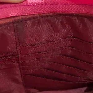 Fuchsia leather pouch with a sleek design. Ideal for carrying essentials.
