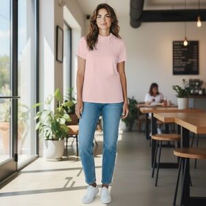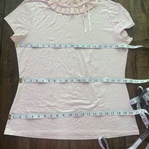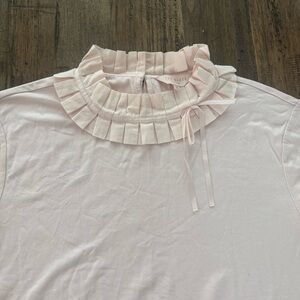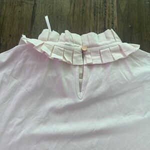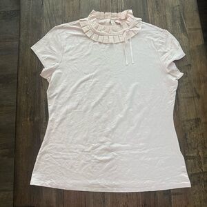 EUC Ted Baker Pink Ruffle Neck Tie Blouse Top Size 5 (XL) Mock Neck Short Sleeve