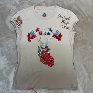 Double D Ranch Play Nice U S A Patriotic Embroidered Tee Size Medium