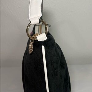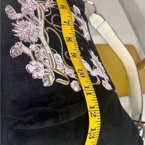 Juicy Couture Black Velvet Hobo with Pink Floral Embroidery