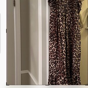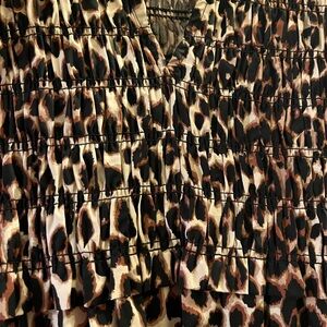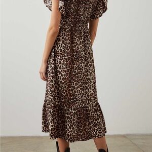 Rails Clementine leopard print midi dress with a V-neck. Smocked bodice and flutter sleeves. Flowing tiered skirt for movement. Bold animal pattern in warm tones. New without tags. Never worn in pristine condition. Size XS