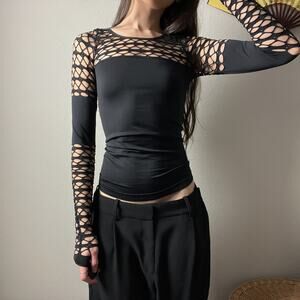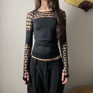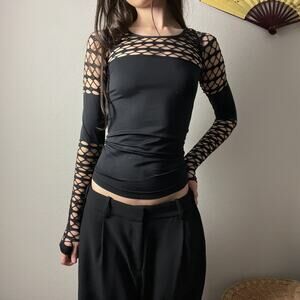 y2k venus black fitted fishnet minimalist long sleeve festival rave goth top