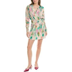 IRO Size 36 US 4 Small Zola Mini Dress Watercolor Print Surplice Neck TINY FLAW