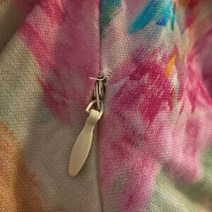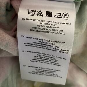Beautiful watercolor print mini dress from IRO. Style is ‘Zola’. Surplice neckline. Long ruched sleeves. Hidden side zipper. There is a small flaw by the top of the zipper under the armpit (see last picture).