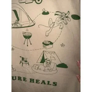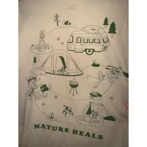 Disney Nature Heals Camping Graphic T-Shirt XL Cream Mickey Mouse & Friends Tee