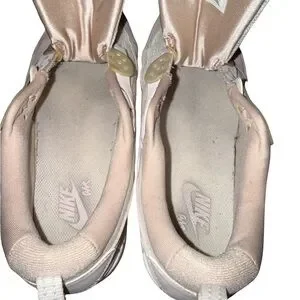 Nike women's sneakers with layered mesh and suede upper. Cushioned midsole with visible air unit for comfort. Neutral blush and cream tones for easy styling.